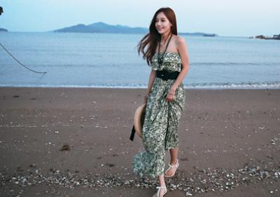 更新 《孙允珠2015.ShesComing - 2015.05▼SonYounJu▲ 2015.05.27 ┇ShesComing┇『古朴典雅豆绿印花束腰抹胸长裙』》