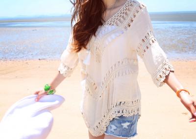 更新 《孙允珠2015.ShesComing - 2015.05▼SonYounJu▲ 2015.05.27 ┇ShesComing┇『清爽度假风棉麻开领白衬衫』》