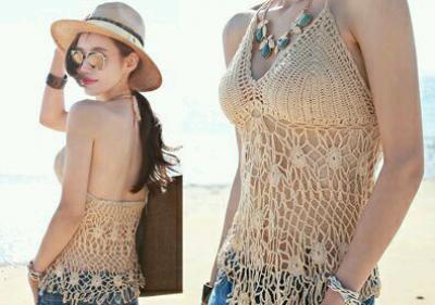 更新 《孙允珠2015.ShesComing - 2015.05▼SonYounJu▲ 2015.05.28 ┇ShesComing┇『卡其色透肤网眼钩花绑脖露背吊带』》