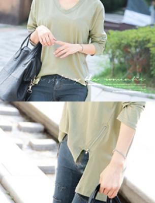 更新 《孙允珠2015.Tom&Rabbit - 2015.09▼SonYounJu▲ 2015.09.14 ┇Tom&Rabbit┇『暗淡浅军绿低领拉链长Tee』》