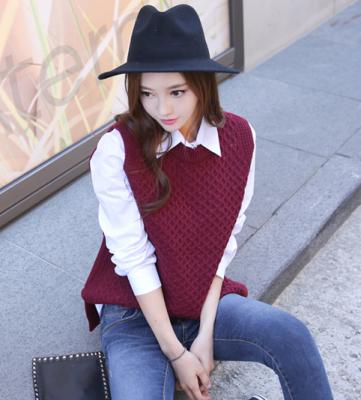 更新 《孙允珠2015.Tom&Rabbit - 2015.09▼SonYounJu▲ 2015.09.17 ┇Tom&Rabbit┇『酒红色菱形花式针织套头背心』》