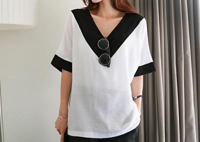 更新 《孙允珠2015.Tom&Rabbit - 2015.07▼SonYounJu▲ 2015.07.03 ┇Tom&Rabbit┇『典雅黑拼色V领荷叶袖衬衫』》