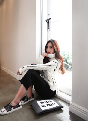 更新 《孙允珠2015年1月套图▼SonYounJu▲150104图片_SC店更新(白色黑条纹针织扭花高领毛衣)(914C)》