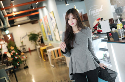 更新 《孙允珠2015年1月套图▼SonYounJu▲150104图片_T店更新(灰色前短后长裙装上衣)(74E0)》