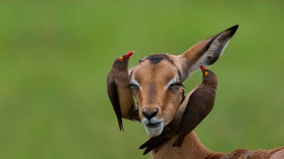 更新 《红嘴牛椋鸟和高角羚, 南非姆普马兰加省 (© Heini Wehrle/Minden Pictures)(20210828)》
