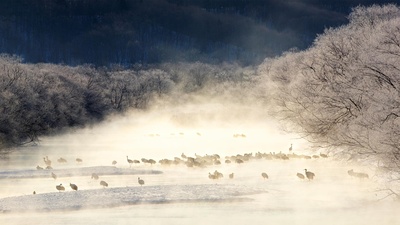 更新 《薄雾笼罩的河流中的丹顶鹤,日本北海道 (© Paul & Paveena Mckenzie/Getty Images)(20200216)》